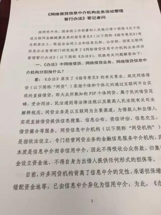 8月24日下午, 银监会会同公工业和信息化部、公安部、国家互联网信息办公室等部门联合发布了《网络借贷信息中介机构业务活动管理暂行办法》。